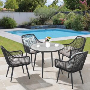 Jiomee Furniture Contemporary Patio Set: Square Table and Hand-Woven Rope Armchairs with Cushions