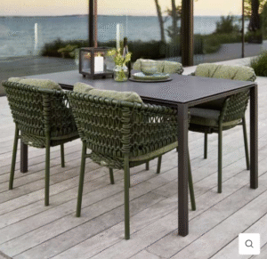 Faux Rattan Woven Chairs: The four armchairs feature a beautiful
