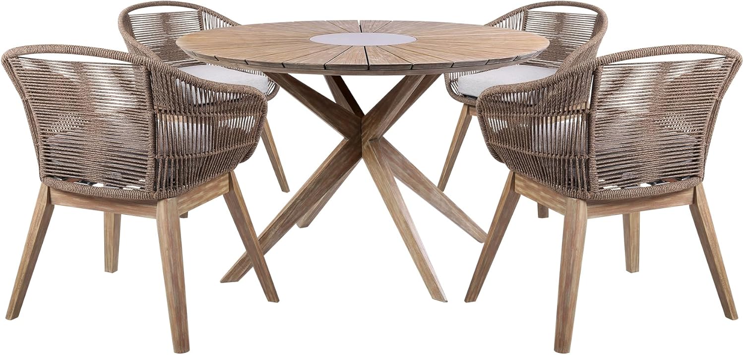 Create a luxurious, resort-like atmosphere on your balcony, patio, or deck with this elegant 5-Piece Coastal Outdoor Dining Set. Combining the natural beauty of teak wood with the modern texture of woven rope, this set is designed for stylish, comfortable al fresco dining.